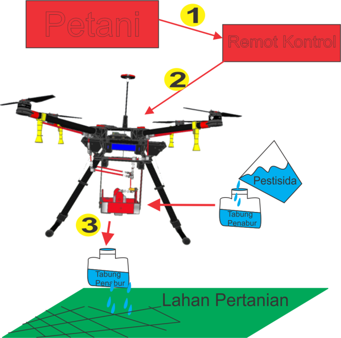 Kelima mahasiswa tersebut mencoba membuat sebuah drone yang bisa difungsikan untuk membantu petani menyebar pestisida organik. Drone tersebut diberi nama “Prototipe Robot Terbang Penabur Pestisida Organik Pembasmi Hama Pertanian” (Probani).